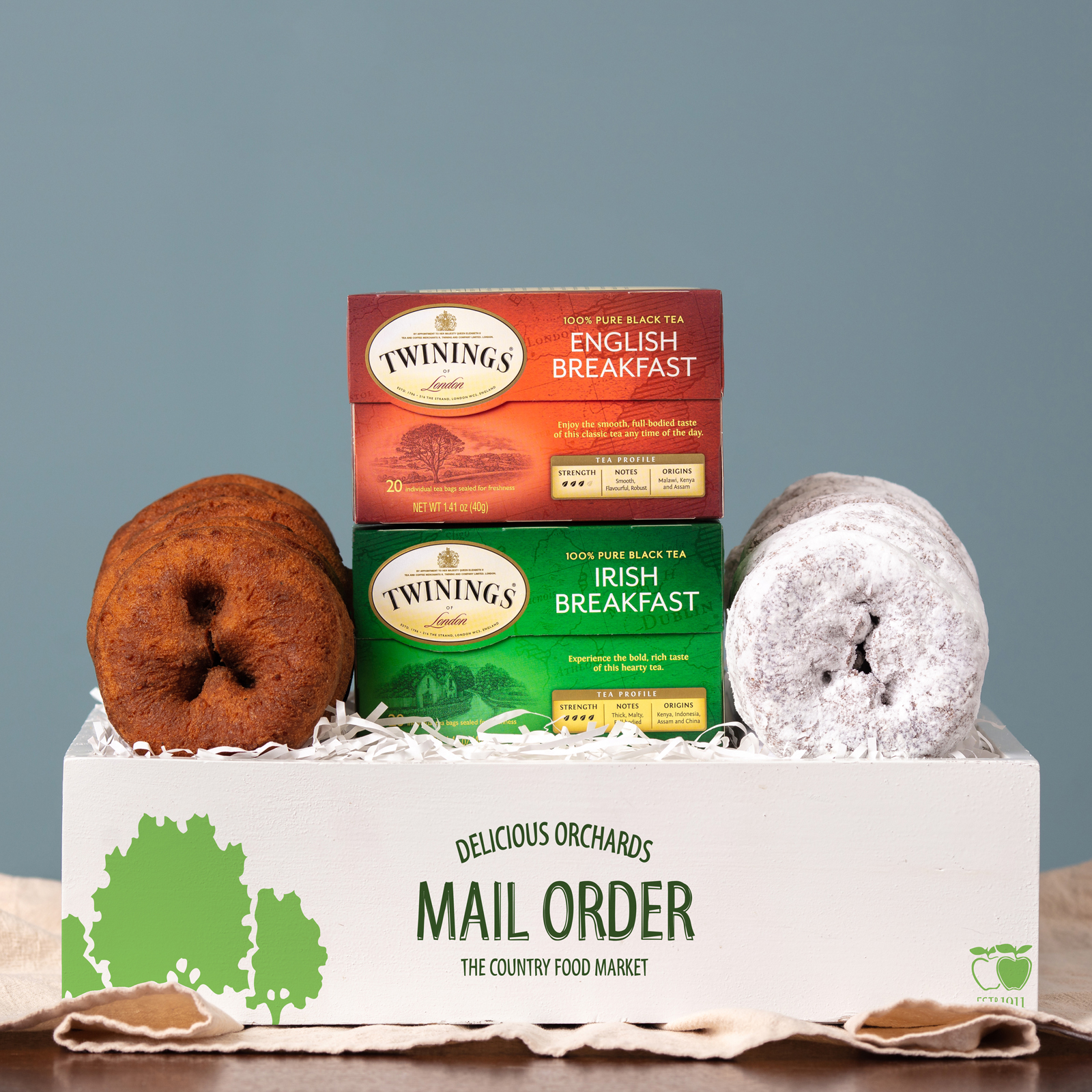 The winning combination of our apple cider donuts along with two of our favorite teas. Great for breakfast, mid-morning break or a late afternoon or midnight snack.
